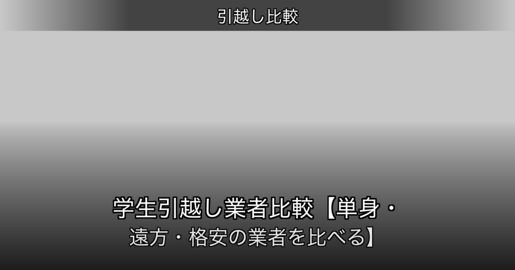 一人暮らし向け引越し業者おすすめランキング5選【2026年版】